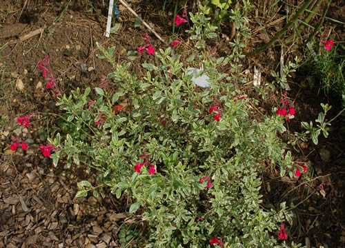 Diese Salvia ist eine buschige Pflanze, ca. 1m hoch. Ein Zweig war abgebrochen, den durfte ich mitnehmen bei meinem Besuch bei einem lieben Forumsmitglied jetzt habe ich ein Dutzend Stecklinge.Es gibt auch ein Etikett, man kann noch erkennen, dass es eine schöne Schrift gewesen ist Die Blätter sind oben dunkelgrün, auf der Unterseite silbrig. Insgesamt samtig behaart. Stängel mit weißem Filzbelag, im unteren Bereich der Pflanze grün, etwas kantig.Kennt sie jemand?