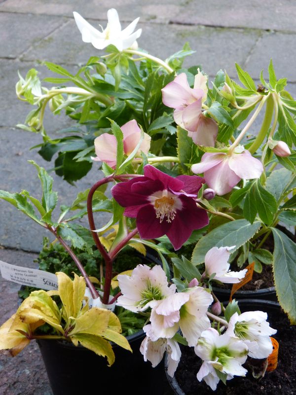 Bis vor Kurzem waren fast alle Neuaustriebe, ausser bei H. niger, noch ziemlich bodennah - ein paar wenige wärmere Tage mit Sonne (und etwas Regen) haben sie "hinterm Ofen hervor" gelockt. :)