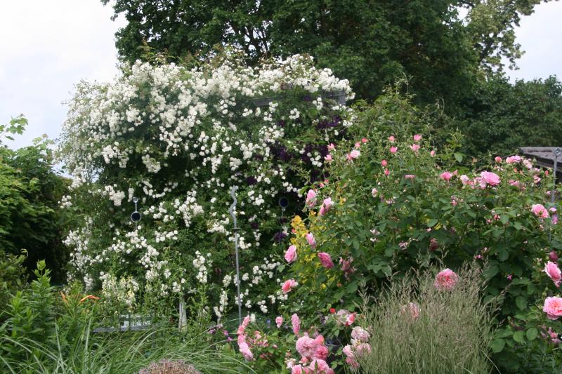 wunderschön,dein Rosengarten Elis.Welcher rosa Rambler ist denn das am Bogen rechts?