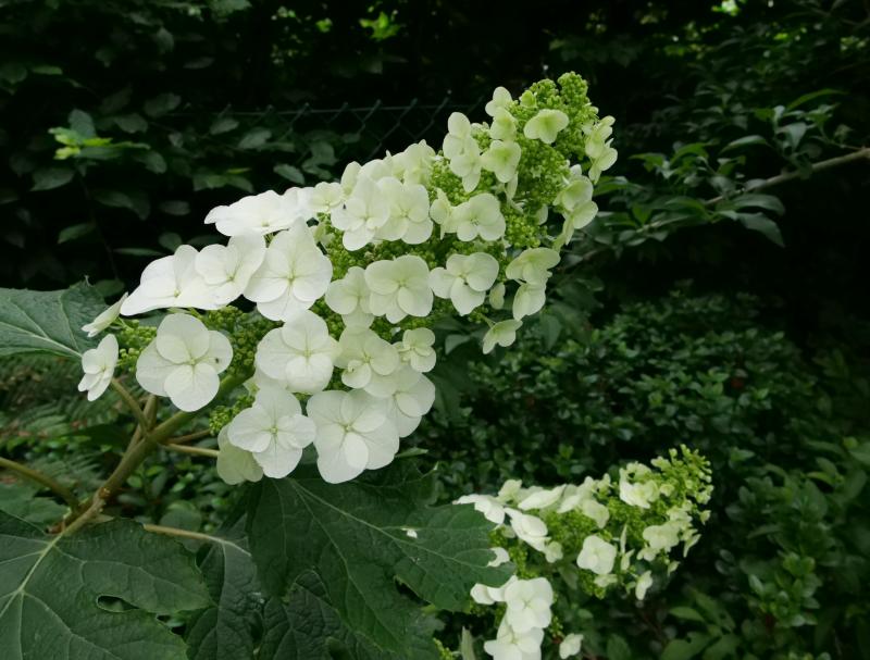 Das mit der Blüte am einjährigen Holz stimmt auch nur bedingt. Im Gegensatz zu H. paniculata werden die Blüten schon am Trieb des Vorjahrs angelegt. Eichblatthortnsien bilden jedoch oft nicht nur Blüten an der Triebspitze aus sondern auch an kurzen seitlichen Verzweigungen. Wenn sie zurückgeschnitten werden kommen sie manchmal daher trotzdem zur Blüte.