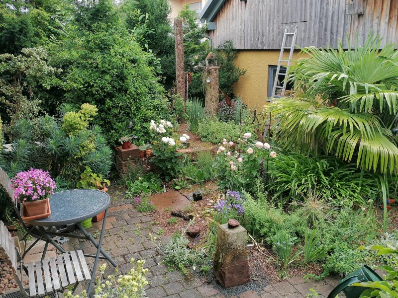 Wir hatten bislang dieses Jahr einen normalen deutschen Sommer mit relativ viel Feuchtigkeit und wenigen Hitzetagen. Wenn ich da schon dauernd gießen soll, wie soll das dann in Jahren wie den letzten werden? Nö, das Ziel sind Bepflanzungen, die in normalen Jahren damit klar kommen. Natürlich muss ich in Hitzezeiten dann auch wässern, ohne geht das sicher nicht.