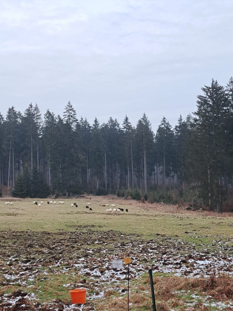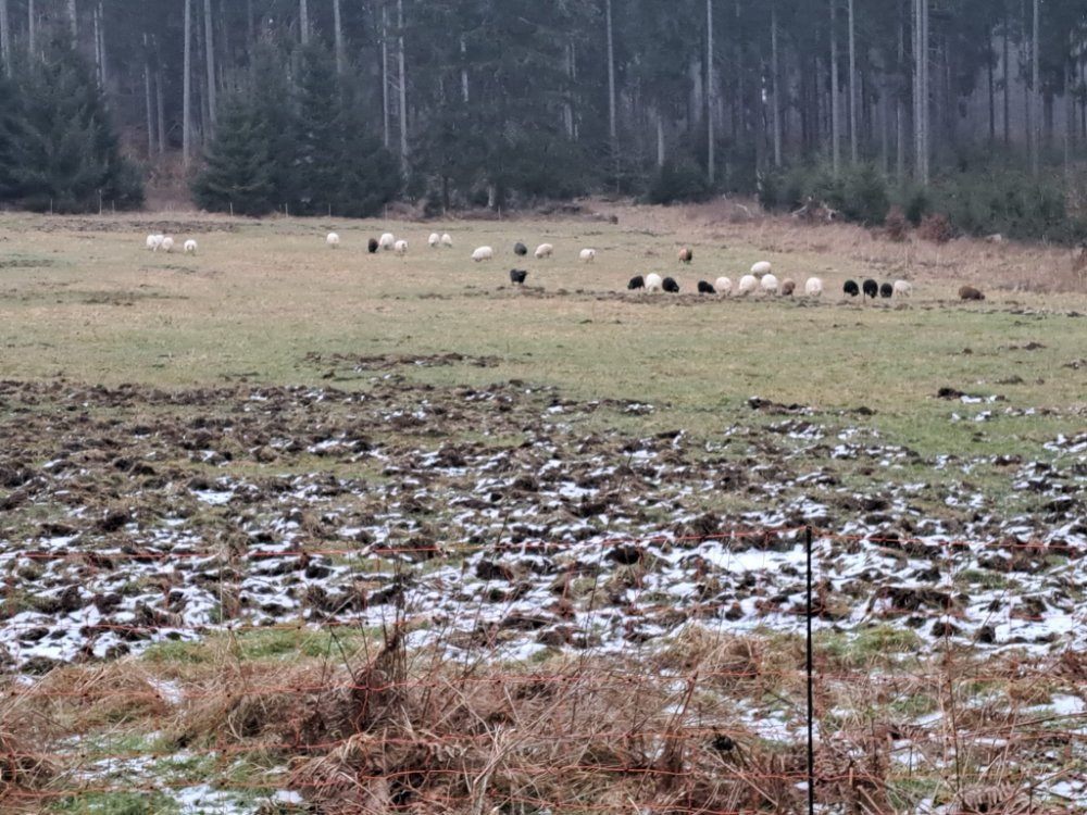 Derweil haben wir nachmittags die Schnucken aufgestallt. Mert lief mir praktisch vor die Füße und selbige müssen nach dem Stromznfall noch mal kontrolliert werden. Das sah ich. Nun kann ich ihn nicht auf den Po setzen und bei männlichen Personen hält er Abstand. Die wollen mir bestimmt nur wieder an die Füße. Womit er Recht hat. Ergo sind jetzt alledrin. Morgen radelt unser Freund hin und wird mit meinem Mann pediküren. Esther hübsch gleich mit. Die ist größer als Mert. Also auch keine Kandidatin für mich. Quendula und ich werden dafür gleich nach der Tierkontrolle ein Baugrundstück zäunen. Da können die Schnucken noch hin, bevor es in die Täler geht. Keine anderen Flächen mehr.