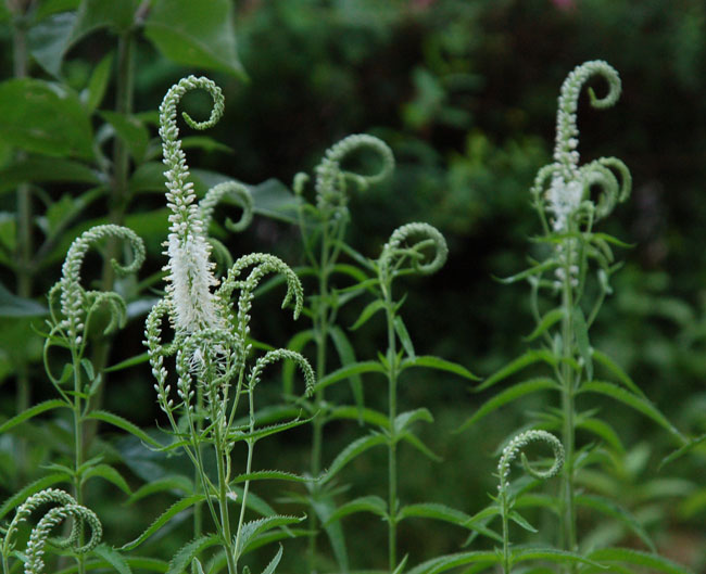 Gerade eben habe ich im Halbdunkel entdeckt, dass meine Veronica longifolia 'Schneeriesin' sich nachts richtig gehen lässt und im Kopfbereich ihre aufrechte Haltung aufgibt