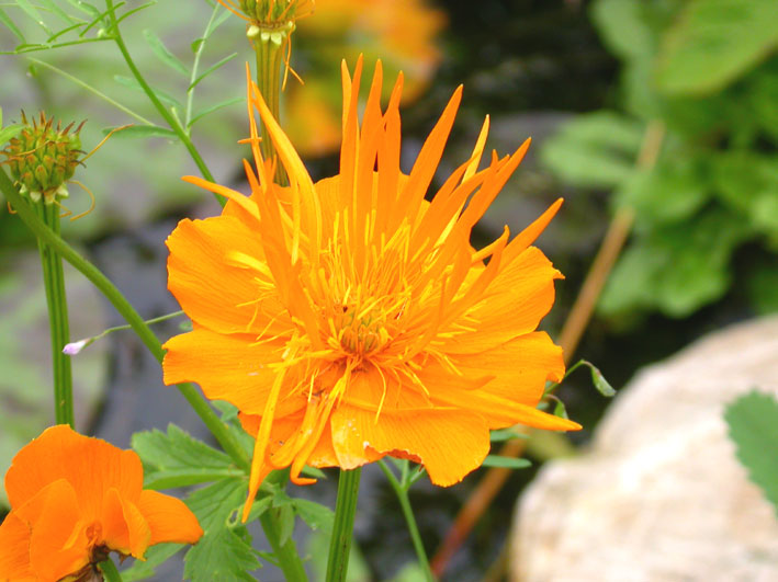 Das ist Schlafmohn, Papaver somniferum.Hier blüht die chinesische Trollblume...Weiß jemand von Euch wie der heißt ?