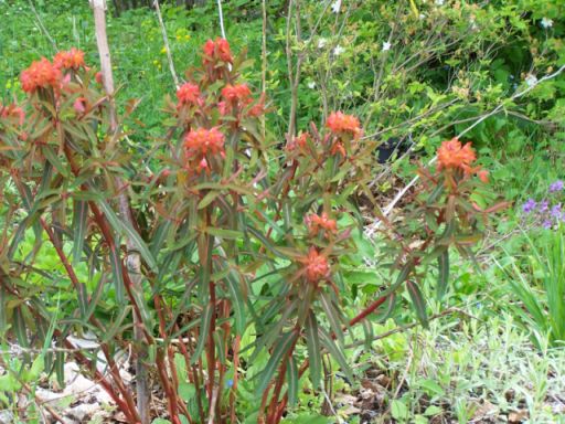 Euphorbia griffithii steht bei mir im Halbschatten. Sie hält es aber auch in voller praller Sonne .LGViolatricolor