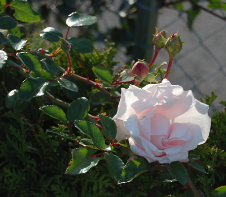 New Dawn kriecht entlang der Thuja-Hecke und hat anscheinend noch einiges vor!