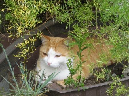 Katzenminze???? Unsere lieben die...allerdings nur die Minze, die ich im Töpfchen von meiner Staudengärtnerin mitbringe. Im Garten ausgegrabene oder gepflückte mögen sie nicht mehr. Katzen!!!Die nach dem Katzenminzegenuß selig hingebreitete Miezi veranlaßte eine Internetfreundin zu dieser Fotomontage....