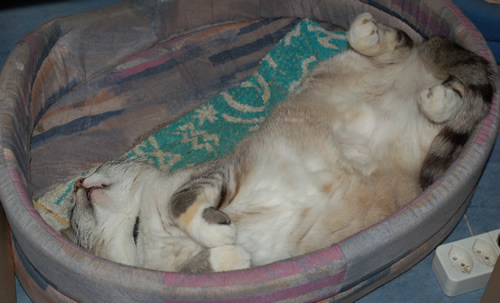 @tinesmaragaidtolle bewegungsaufnahmen, die mimik der katzen ist sehr ausdrucksstark! ::)Speedy und Panther lassen es etwas ruhiger angehen.wo läßt es sich bei hitze am besten abmatten? im schatten.hier sind meine beiden teilnehmer am synchron-schnarchen: