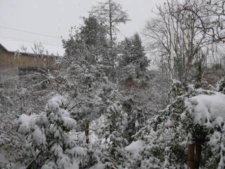 Hier steht der Schneematsch auf der Straße. Abfließen kann nix, weil die Gullis voll sind.Temperatur 1,7 Grad.Heute morgen waren die Gehwege spiegelglatt durch den Nieselregen.Teilweise richtige Eisflächen.Im Garten sieht man kaum eine Veränderung, alles noch weiß bedeckt.