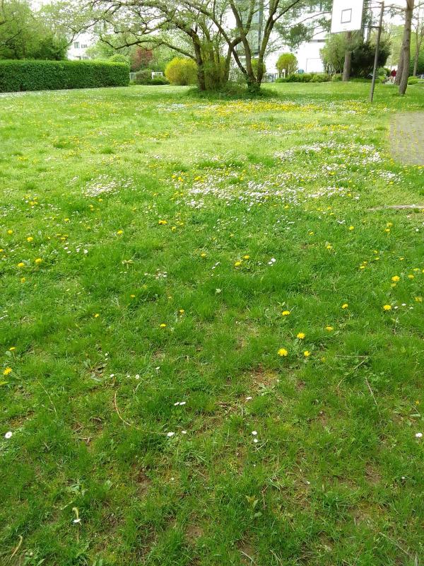 Hier ist es dasselbe Spiel. Nebenan im Park gab es bis vor ein paar Jahren noch größere Wiesenschaumkrautflächen im Schatten hoher Bäume. Das Wiesenschaumkraut ist bis auf Restpflanzen verschwunden. Dafür breitet sich Saxifrage granulata stark aus. Das profitiert von lückig gewordenem Gras und später Mahd.