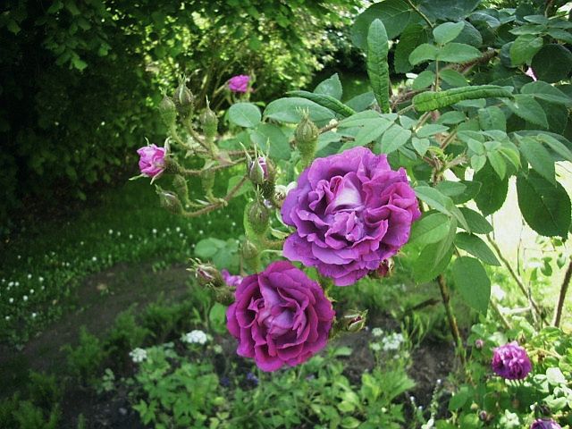 ...und falls ein wenig Rot den Schatten beleben soll, käme auch 'Crimson Shower' in Frage. Wenn der Schatten nicht gar zu dunkel ist, auch 'Chevy Chase'.