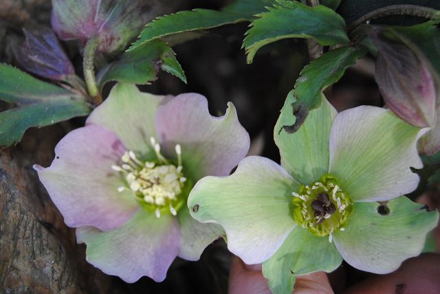meine mutter hat viele helleboren von frau schmiemann im garten und heute eine schöne frühlingsschale mit den blüten geschmückt