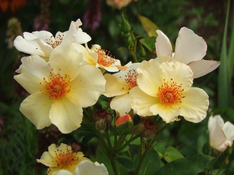 'Dairy Maid'eine kleine Rose mit einfachen sonnigen Blüten und schönen Staubgefäßen. :)