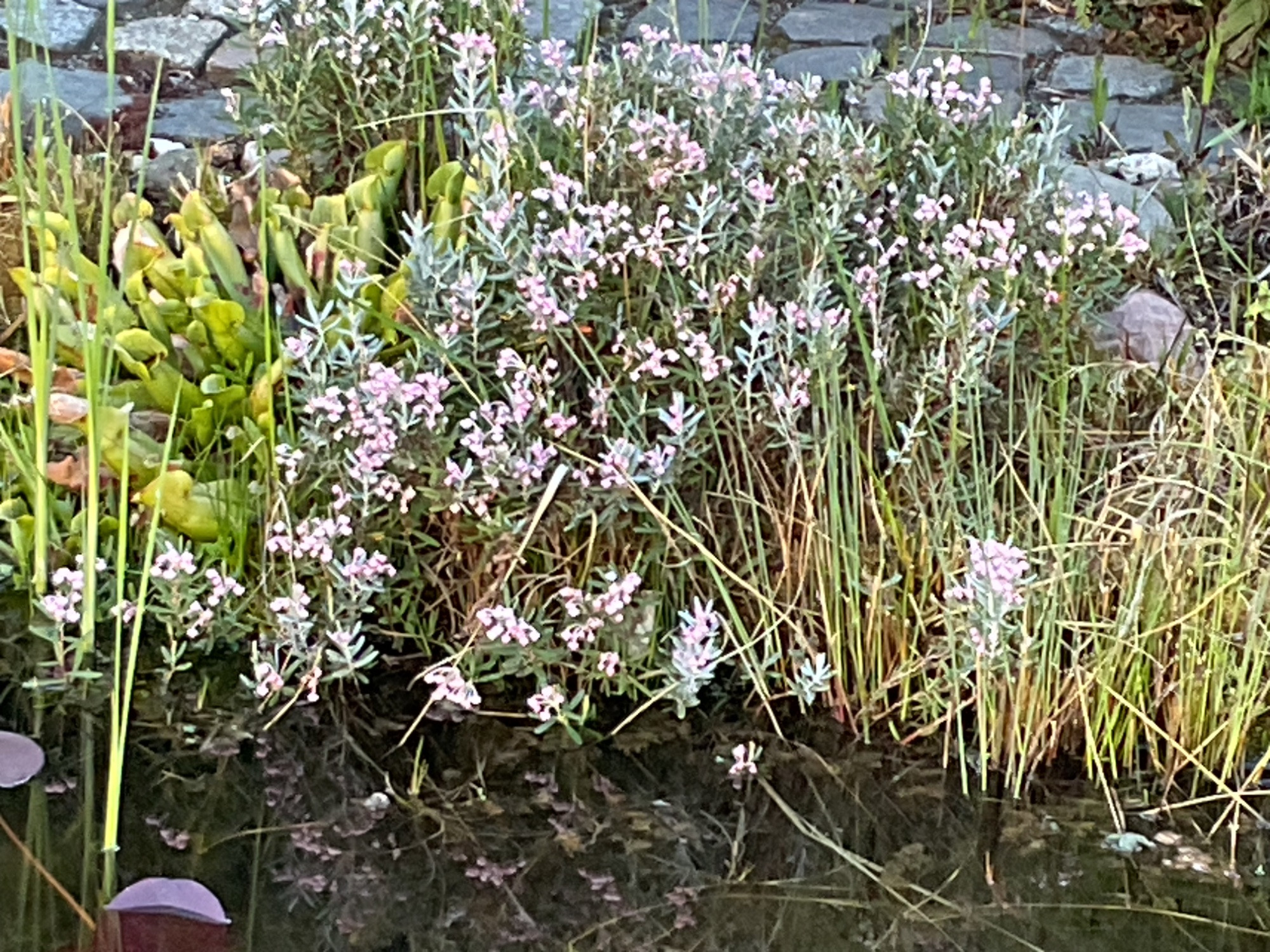 Am Teichrand blüht jetzt die Andromedaheide, ist ein arger Wucherer aber schön. An anderer Stelle das Fettblatt