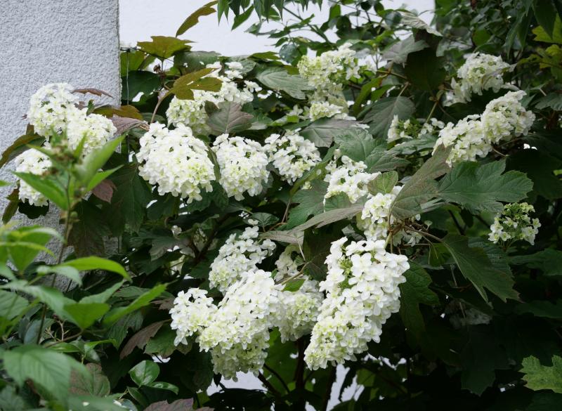 Das mit der Blüte am einjährigen Holz stimmt auch nur bedingt. Im Gegensatz zu H. paniculata werden die Blüten schon am Trieb des Vorjahrs angelegt. Eichblatthortnsien bilden jedoch oft nicht nur Blüten an der Triebspitze aus sondern auch an kurzen seitlichen Verzweigungen. Wenn sie zurückgeschnitten werden kommen sie manchmal daher trotzdem zur Blüte.