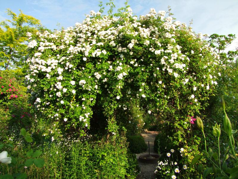 'Dentelle de Bruges'Sehr stacheliger Rambler von Louis Lens.Er wurde leichtfertig an einen Bogen gesetzt. :-X