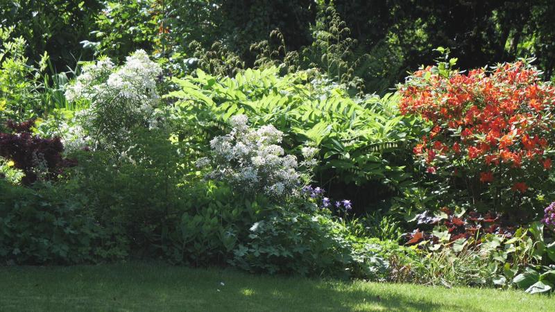 Im Chaosbeet gedeihen auf wenigen Quadratmetern Aruncus,Polygonatum,Azalea und Choysia. Bevorzugen ja eigentlich nicht dieselben Standortbedingungen. Hauptsache ihnen gefällt es.  ;D