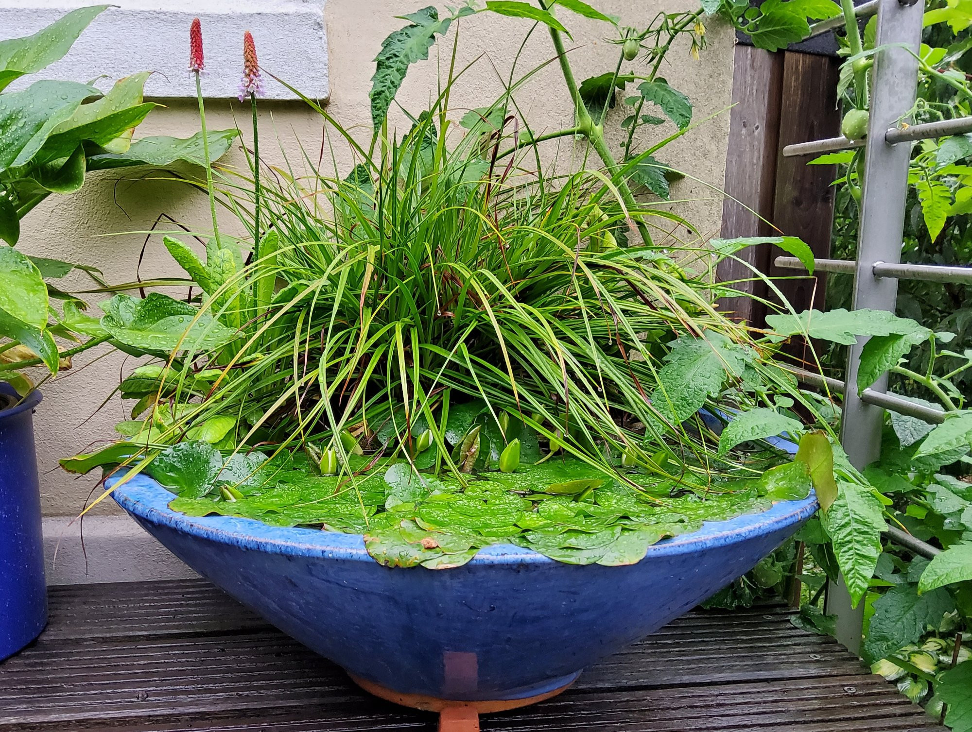 Die Versuchspflanze von P.s. macht bisher keinen unglücklichen Eindruck, hat allerdings nur nasse Füße, während die andere bis zum Kragen nass steht.