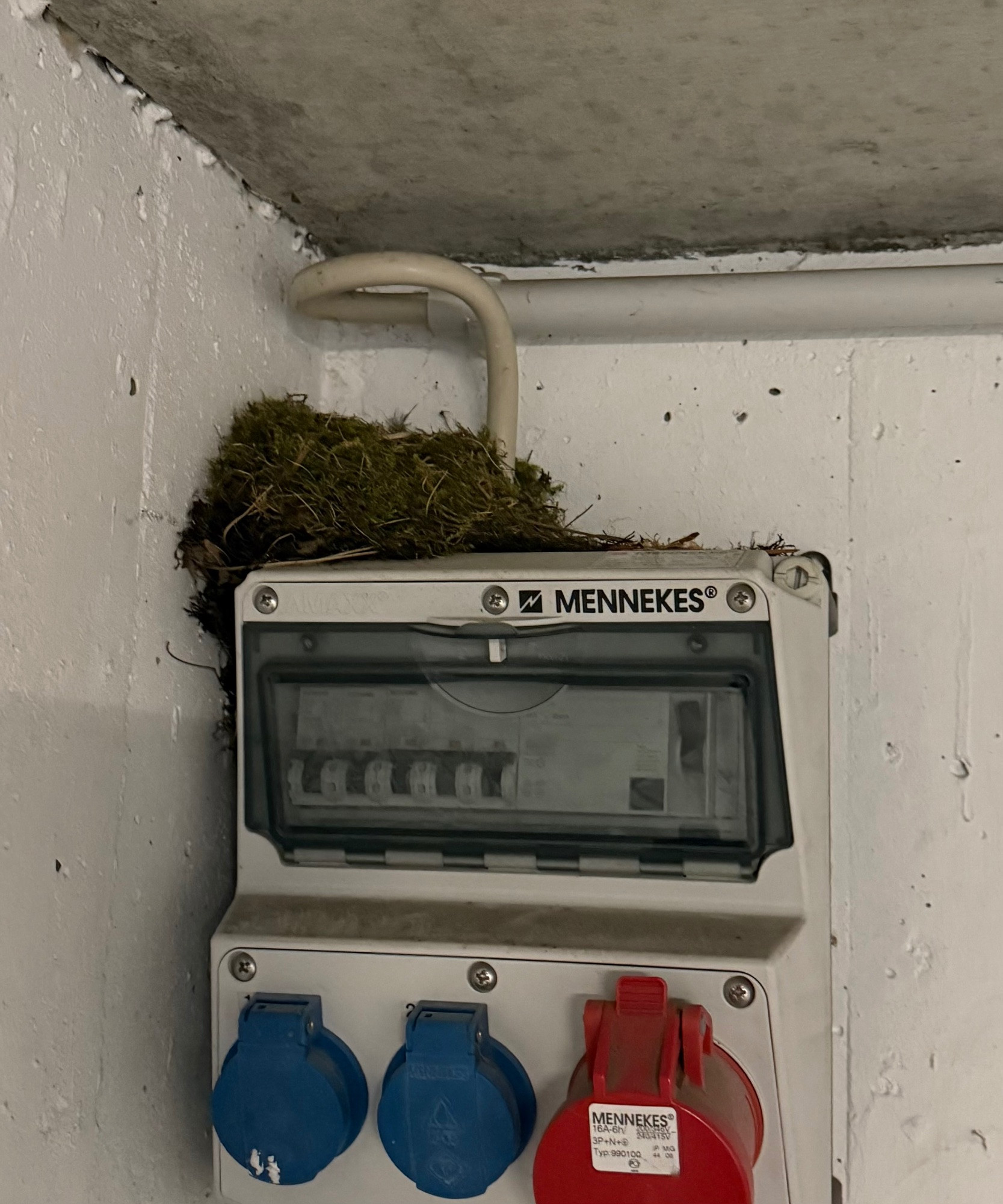 Bei uns nistet immer ein Paar auf einem Balken. Bei jedem kleineren Sturm schmeisst es das Nest runter.