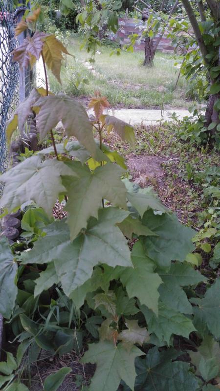 ... und ganz blöde Frage: Ist das ein Ahorn? Die unteren Blätter sind riesigst und der Wuchs ist so gedrungen...