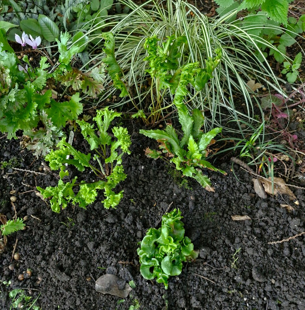 Dieser Farn ist ein perfekter Lückenfüller, er lässt sich auch im Hochsommer (wenn ein Virusbefall sichtbar ist) umsetzen und verträgt auch etwas Mittagssonne. Ich würde davon gerne ein paar Jungpflanzen in Reserve parat halten wollen.