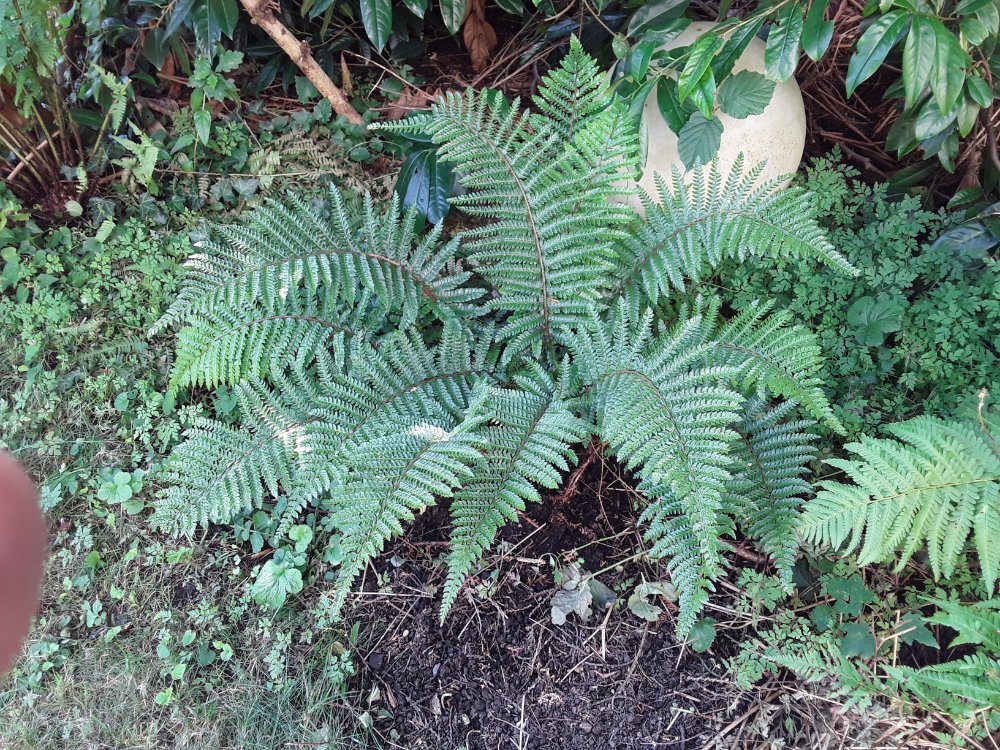 Ich habe von diesem Farn drei Exemplare und beim Pflanzen die Schilder vor Jahren einfach in einem Karton abgelegt, da ich ja so wunderbare Bücher über Farne habe und glaubte, sie später wieder danach identifizieren können. Aber sie gleichen sich eben alle so sehr! Ich kann leider nur ganz spezielle Farne bestimmen.