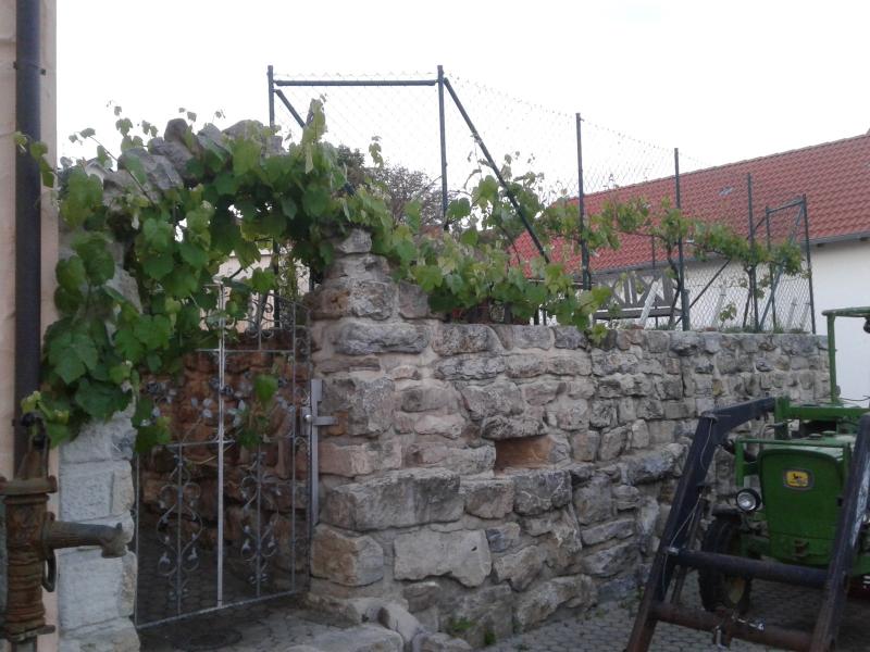 Und Venus ist die am Torbogen auf dem Bild, das Foto ist ca ne Woche alt, gestern hab ich sie geschnitten, gefühlte 17 meter Triebe... Der Stamm knapp über Veredelung hat ca 15 cm Durchmesser mittlerweile, die wächst wie blöd, bringt Bilderbuchtrauben in Massen, und das beste: keiner der Familie ißt sie gerne. Wenn der Foxton sich verflüchtigt hat ist sie mir viel zu süß, das muß man mögen.