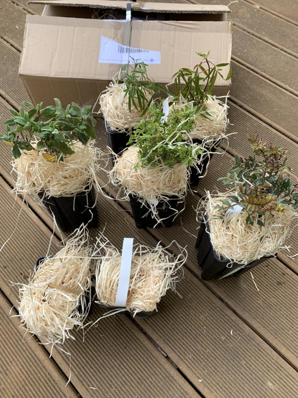 Erste Staudenonline-Lieferung heute, alles gut in Form und nur mit Holzstaebchen, ohne Verpackungsfuellstoffe eingepackt. Tipptopp
