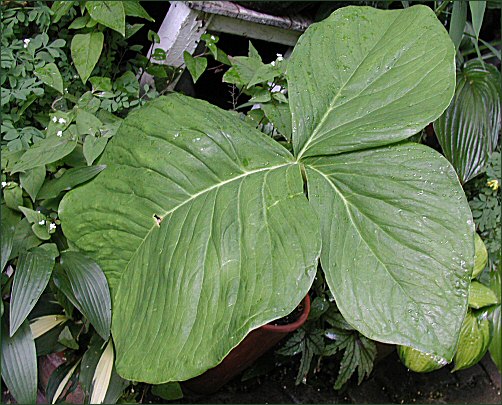 ne...ist kein arum-blatt...kann ein arisaema sein oder evtl. auch dracunculus ...sind elende stinker...schau mal...blühte deiner so in etwa: dracunculus pinellia schließe ich aus, wel der stängel deiner exemplare so marmoriert zu sein scheint.