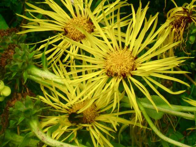 Wird über 2 m hoch und samt sich gelegentlich aus: Inula magnifica. Wenn es so viel regnet wie heuer, legt sie sich auf die Seite: