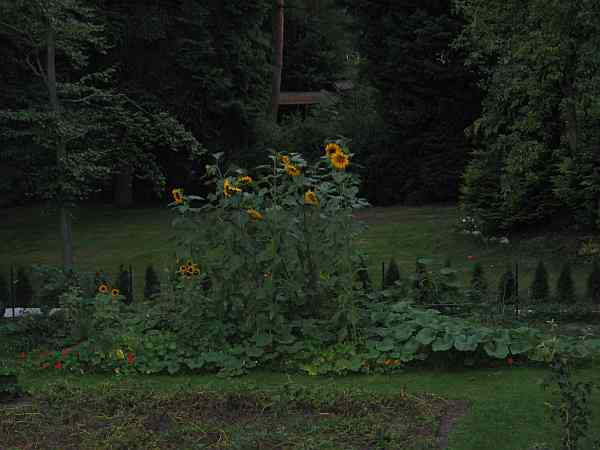 Sonnenblumen haben jetzt 3,4 Meter erreicht. Viel mehr wirds wohl nicht.