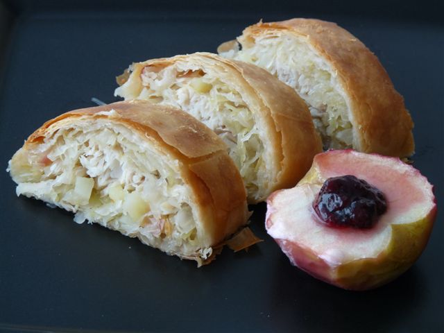... mmmhh, das sieht lecker aus :Dbei mir gab es: Sauerkrautstrudel mit geräucherter Forelle