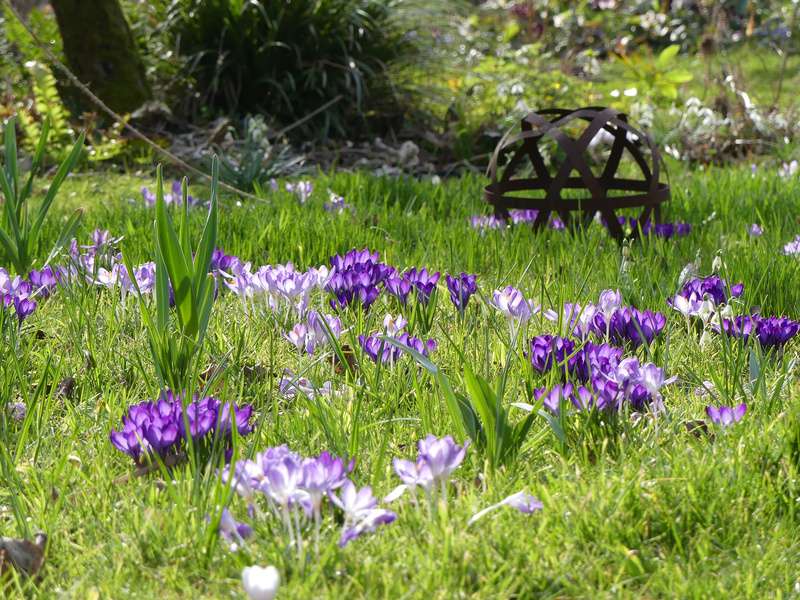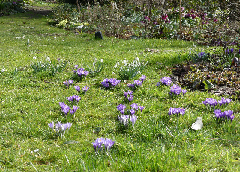 Auch im übrigen Rasen sind Krokusse eingestreut.