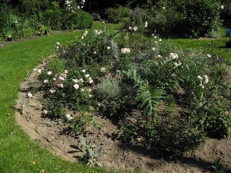 Der innere Garten ist ja viel behüteter, als die wilde Wiese, wo gerne der Ostwind im WInter rüber peitscht.Das Austinbeet mußte leider einem cremefarbenen Teerosenbeet weichen, hier passen 18 Rosen rein