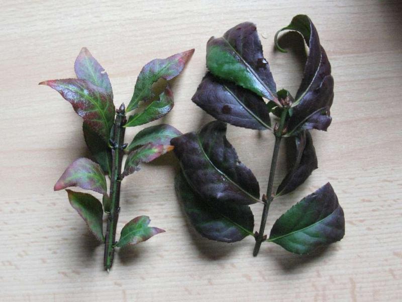Nach einem völlig verregneten Arbeitstag konnte ich nur Triebspitzen abschneiden und auf dem Schreibtisch fotografieren. Links ein "normaler" Euonymus alatus und rechts die Sorte 'Compactus'.Ich gehe davon aus, das die meisten in Baumschulen verkauften Exemplare vegetativ vermehrt sind und es eigentlich nicht so viele verschiedene Klone geben dürfte.Bei den bei uns verkauften Pflanzen kann ich sie auch am Wuchs unterscheiden. Die Art wächst ungeschnitten locker aufrecht und 'Compactus' eben "kompakt" und fast "überhängend".Sorry, ich bin euch Vergleichsfotos von Euonymus alatus und der Sorte 'Compactus' schuldig. Aber Pearl hat schon Recht. 'Compactus' bildet nicht so ausgeprägte Korkleisten aus wie die Art. Außerdem soll sie angeblich nicht viel größer als einen Meter werden und wächst dichter und stark verzweigend.Herbstfärbung sollten jedoch beide zeigen!