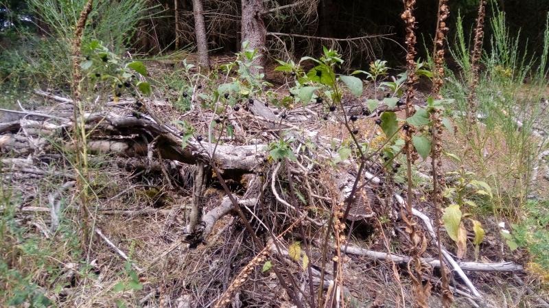 Hier im Wald, haben sich zwei Arten zu einer Kooperation zusammengeschlossen. Der eine sticht unheimlich, der andere ist sehr giftig. Distel und Tollkirsche.