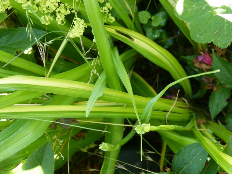 Habe ich vorher noch nie gehört, dass die Sorte gestreiftes Laub hat. Wieder was Neues!Schlechtes Bild, aber man erkennt es wohl. Vielleicht sollte ich sie bei Gelegenheit mal aus dem Staudendickicht holen.