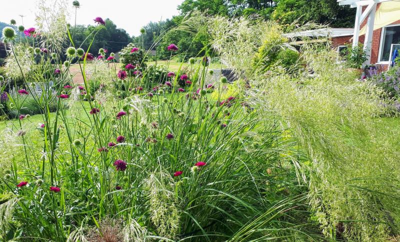 Nein, die hatte es ja heuer zum 3. Mal. Es liegt inzwischen ohne Regen, die Blüten sind zu schwer oder was weiss ich. Das ist einfach optisch viel zu üppig. Ich werds mit denen vielleicht halten wie mit dem Stipa tenuissima: es hat sich heuer gut versamt. Die können ja bleiben, sie sind noch nett und filigran, und die Mutterpflanze muss weg.