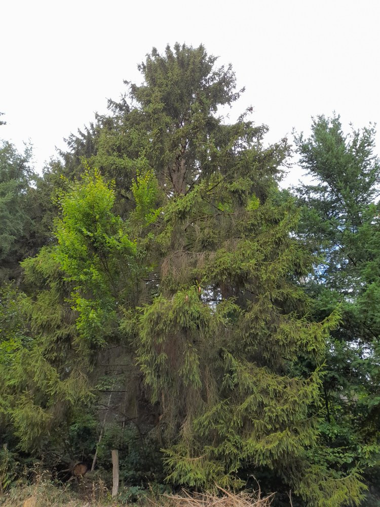 Wenn das alles bereinigt ist und tatsächlich sich auch endlich die Grasnarbe entwikelt, kommen noch 4 Eichen hin. Wir spielen Hutewald in miniatur. Weil: Nein, Ich führe keine Feldzug gegen Bäume. Wir schätzen den Schatten, die Vielfalt, die Früchte. Aber Nadelgedöns im FFH Gebiet: Nö.