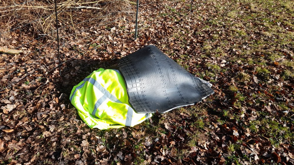 Mega schwierig auch die Bergung. Sie hat Estherformat, sprich ca. 70 kg. Zu zweit den Hang hochgeschliffen war ich klatschnass. Gut. Ich musste eh bis auf Unterhemd blank ziehen. Mit Jacke, Fußmatte, Kofferraummatte, Oberteil konnte ich sie abdecken, da ein Einladen ins Auto wegen Gewicht ausfiel und ich keinesfalls riskieren will, dass Raben kommen. Wir fahren gleich nach der Tierkontrolle hin. Mit dem Trecker. Bergung extrem
