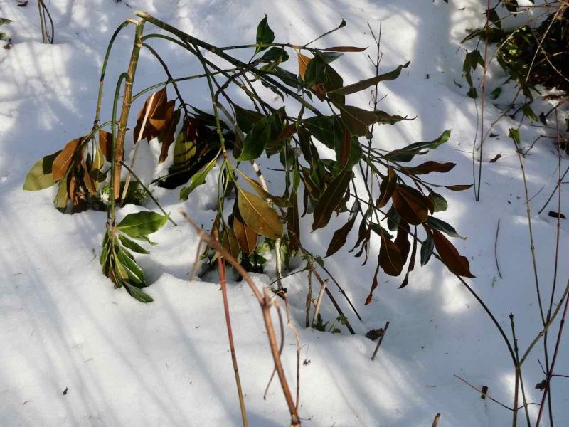 Wirklich schade! Ob es bei diesen hochgewachsenen, aber noch recht dünnen Exemplaren wohl besser ist, wenn man sie für eine Weile an einen Stab anbindet? Aber allgemein scheinen es Magnolien mit ihrem brüchigen Holz in Gegenden, in denen es viel Schnee gibt, eher schwer zu haben...
