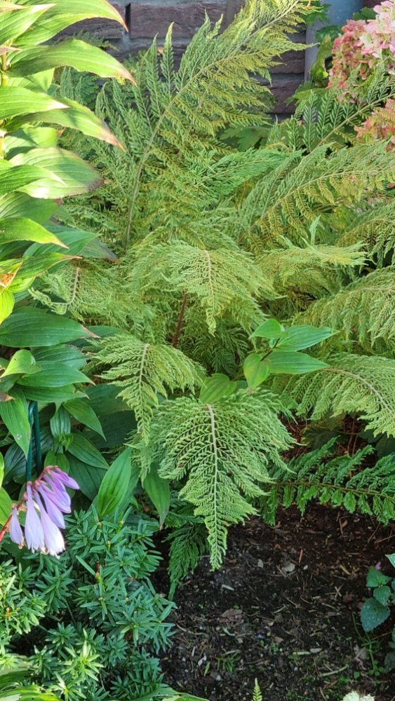 . Meine Fotos stammen vom Juli 2024. Momentan liegen bei uns die Farnwedel ziemlich platt am Boden. Die Schönheit kommt mit dem Neutrieb wieder