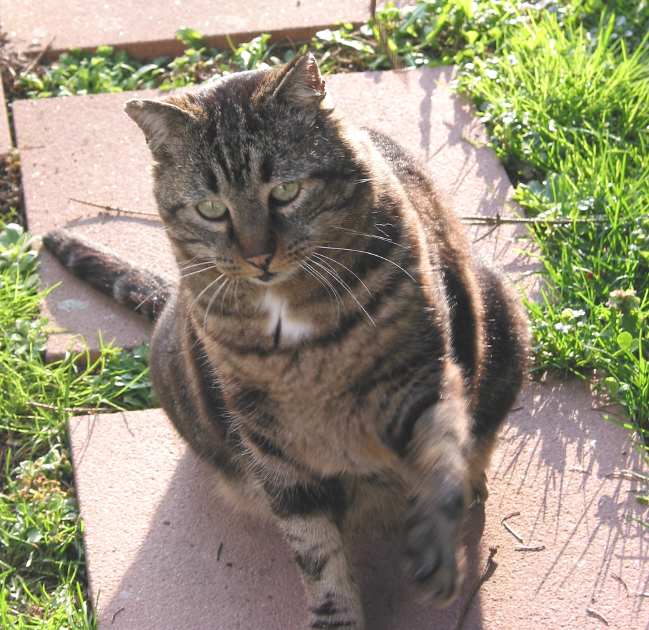 Also unsere Gartentigerin war heute wenige Stunden draußen und was hat sie mitgebracht? Leider ist das Foto unscharft, da das Objekt nur 2 mm groß war, ohne Beine, und sich relativ schnell bewegt hat.