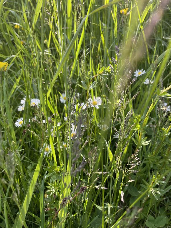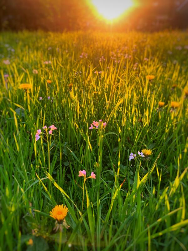 So eine Wiese sieht auch mit viel Gras und sporadisch Schaumkraut/Löwenzahn in der Abend Sonne ganz nett aus