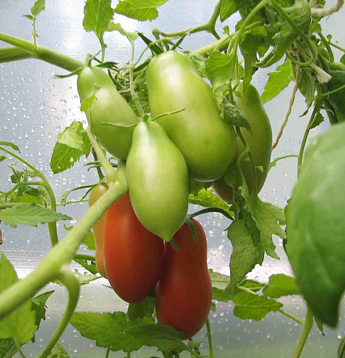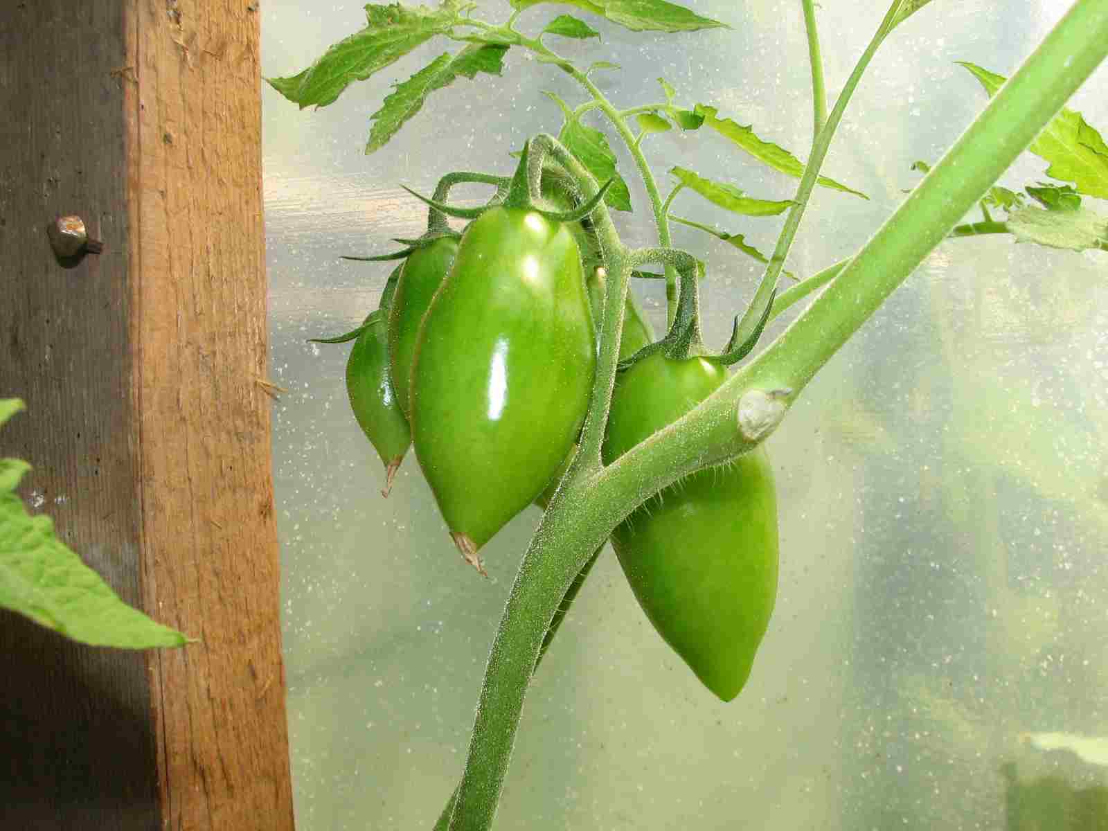 meine Sungold F1 absaat war im vorjahr (3. oder 4. generation?) mind 3 m hoch u. hing voller (goldgelber, süsser!) früchte. da ich sie 5 triebig hatte, sah sie richtig imposant aus. :Ddie neuerliche absaat davon "kümmert" heuer bei ca. 1,5m herum u. hat deutlich weniger früchte. da nur 1-triebig, wirkt sie etwas mickrig! :-\die früchte sind aber genauso goldgelb u. süss wie immer! :Phier ein foto meines heurigen "integrierten" tomatenanbaus!