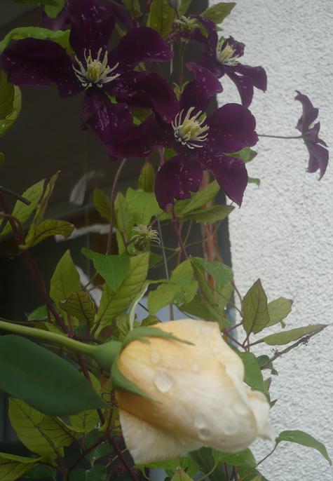 aufblühen wird sie dann wohl im September, aber ich habe ich mich jetzt schon über die kommende Farbkombination gefreut: Lade Hillingdon Cl. mit Clematis rouge cardinal.Qualität ist nicht so gut, aber im Regen wollt ich schnell wieder rein...