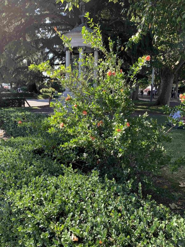 Hatte letzte Woche in der Schweiz zu tun, am Genfer See (Kanton Waadt). In Lausanne findet man immer häufiger Punica granatum in öffentlichen Pflanzungen. Hier eine Sorte mit gefüllten Blüten (in aller Regel steril, nicht fruchtend) unten am See im Stadtteil Ouchy. Auch weiter oben in der Stadt (ca. 500 M Seehöhe und knapp darüber) habe ich mehrere schöne blühende und fruchtende Exemplare gesehen (sowohl steril als auch fruchtend). Klima ist im Winter dank See und Bergen im Norden milder als hier, aber von mediterran weit weg.