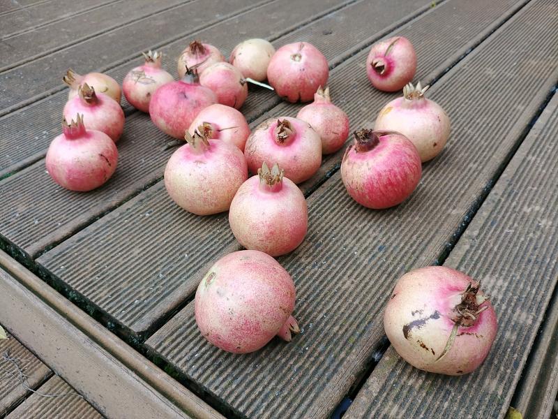 meiner steht in Wien (südwestlicher Stradtrand). Die Fruchtbildung wurde offensichtlich durch die Spätfröste im April verzögert. Blüte war Ende Juni, in anderen Jahren aber schon ab Ende Mai / Anfang Juni. Die Granatäpfel wachsen zwar jetzt zügig, aber zu dieser Zeit sollten sie schon deutlich größer sein. Der bisherige Sommer war auch nicht dazu geeignet, den Rückstand einigermaßen aufzuholen.