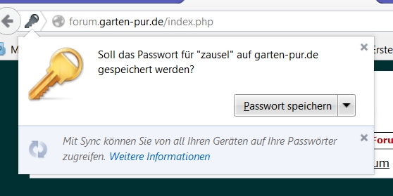 Abfrage (Hinweis): sh. BilddraufklickenSupervorteil: jeder, der an den PC kommt und ihn anschalten kann, kann unter deinem Usernamen bei Pur schreiben ;DWenn die Einstellung unter Sicherheit- "Passwörter speichern" nicht zurückgenommen wird, labert Firefox einen immer voll, wenn man sich irgendwo per Passwort einloggt und man kommt schnell in die Versuchung, sich auch anderswo automatisch einzuloggen.