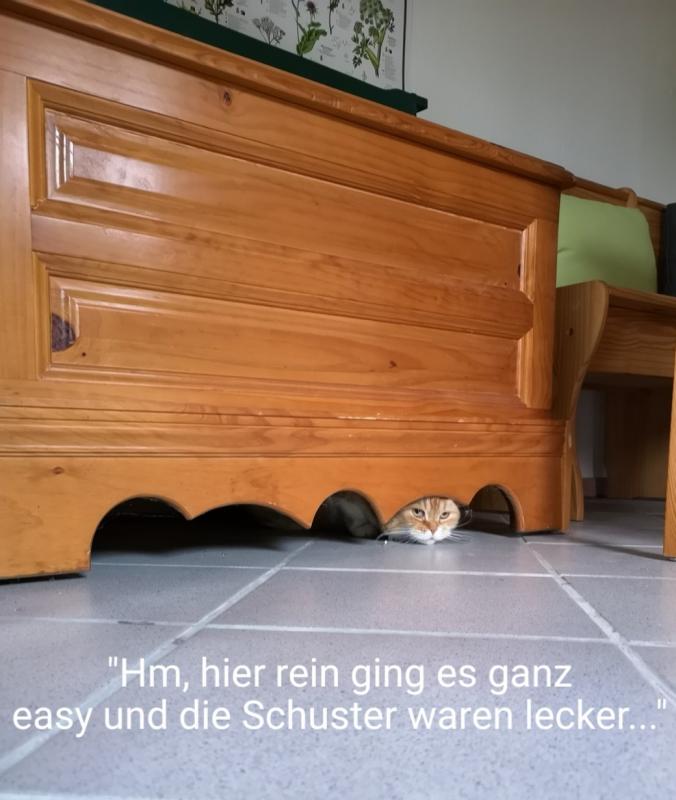 Die 10cm-Höhle in der Gartenhütte hat Madame heut auf Spinnenjagd erkundet...... ;)